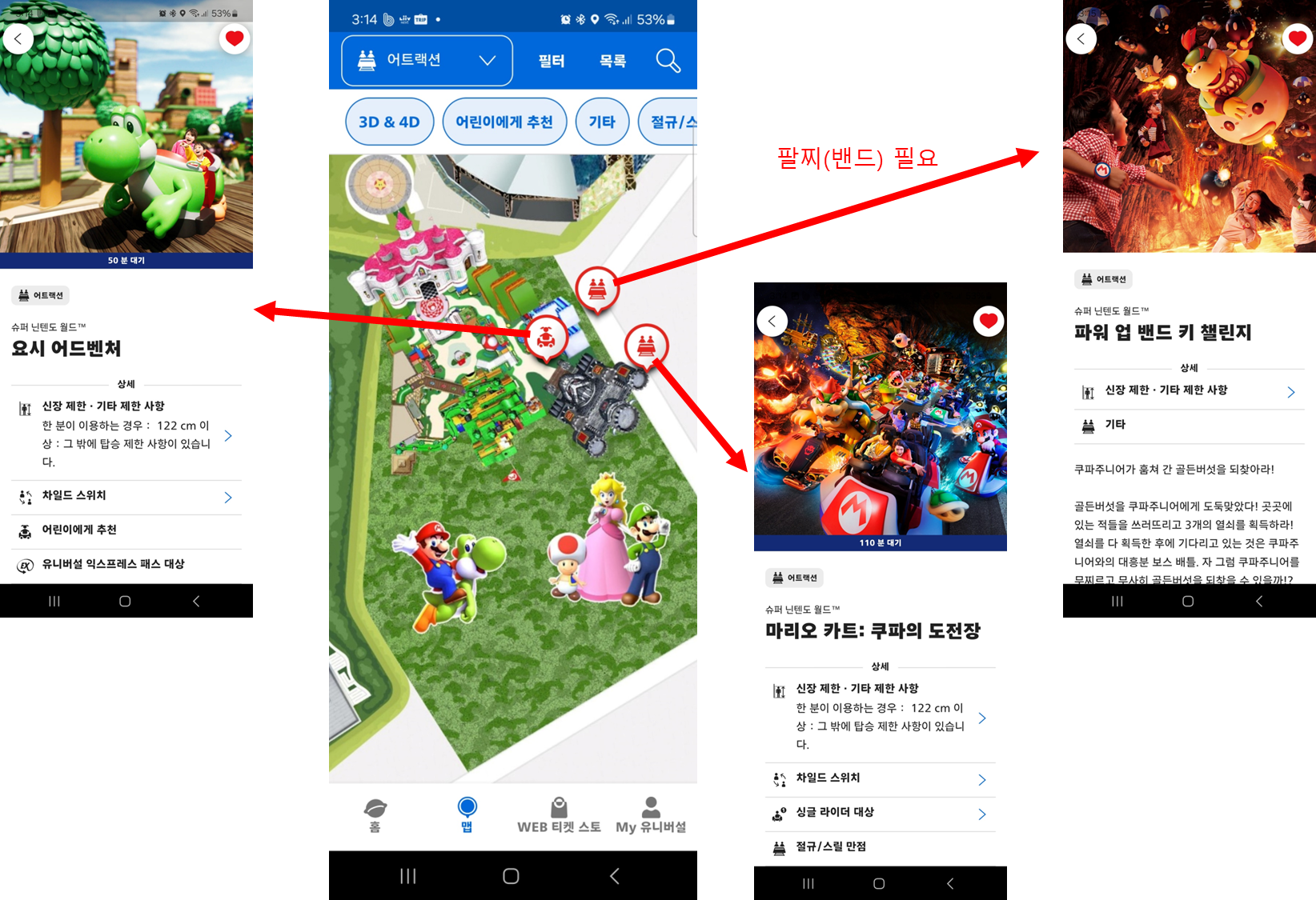 3. 슈퍼 닌텐도 월드와 위저딩 월드 오브 해리포터에 입장해서 즐겁게 놀때 각각 도구가 필요한데요. 닌텐도 월드는 팔찌, 해리포터는 지팡이가 필요합니다. 꼭 필수는 아니고요. 슈퍼 닌텐도 월드에서는 "파워 업 밴드 키 챌린지"를 이용할 때 필요합니다.